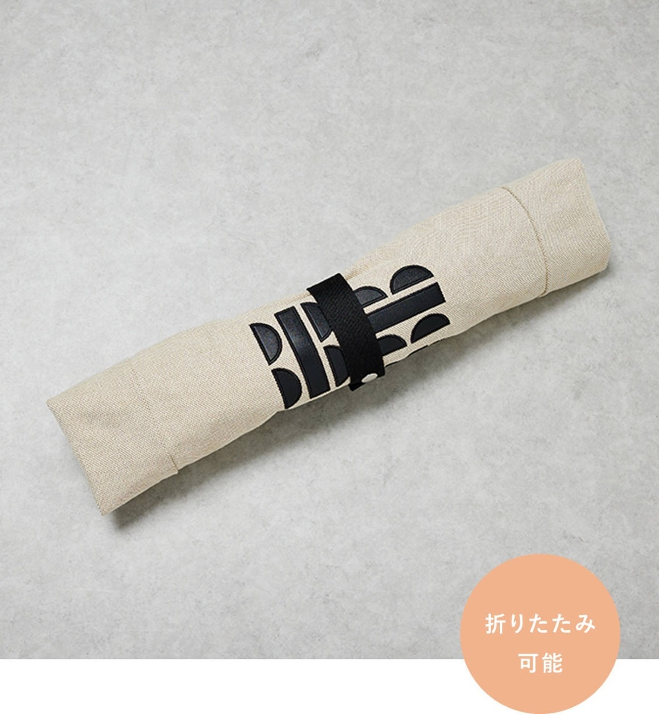 ぐるぐると巻いて止められるベルトが、実は中に収納されています。くるっと巻いてドライブのお供や荷物が増えそうな日に持っておくのもおすすめ。