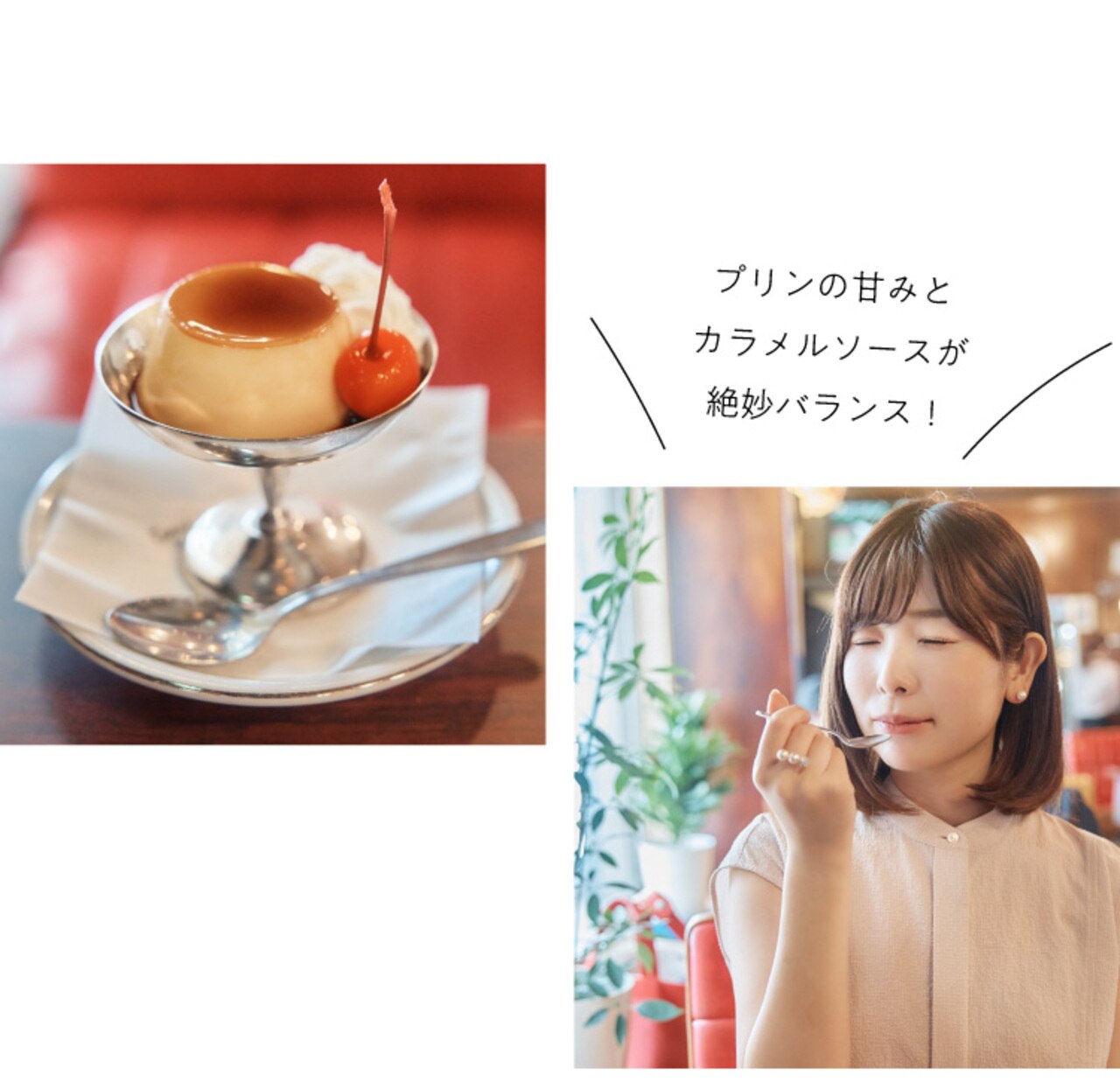 うーん美味しい!一日に数量限定のプリンは、お店に行く前に電話で確認するのが通!待ち合わせをするのも、こんなロケーションならいつまでも待てそう。今日の装いも小ぶりな襟と袖がレトロシックなワンピースを。
