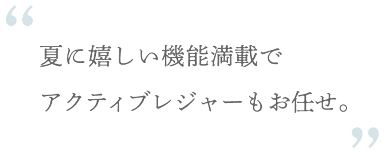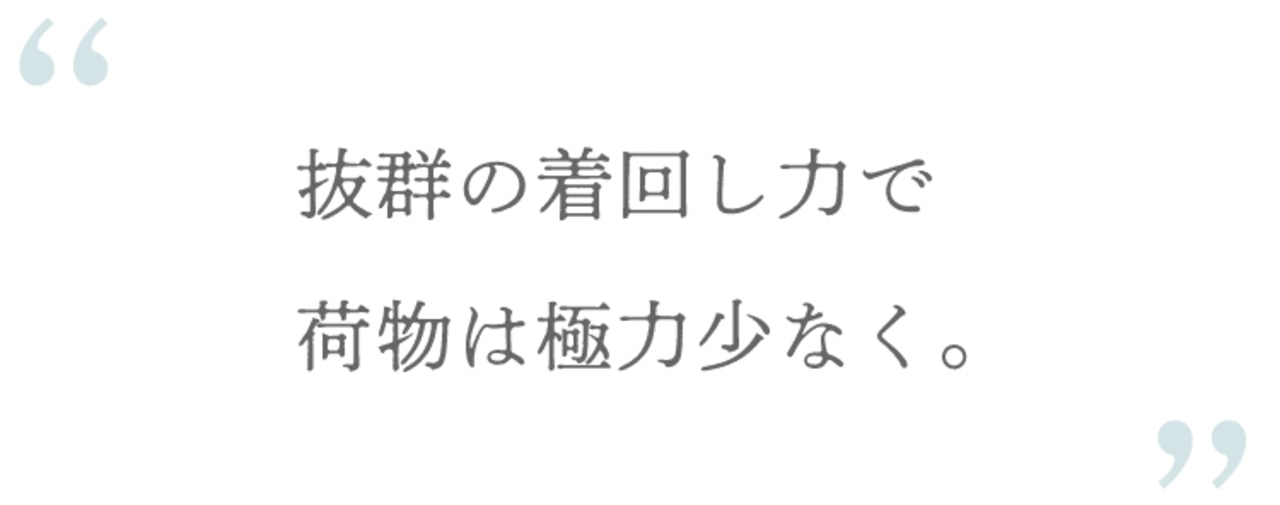 撥水からUVカット、360度ストレッチ、速乾性も高いから、夏レジャーにも対応。子どもとの水遊びや水際シーンも楽しめます。無難になりがちな無地ワンピは色で遊んで夏気分を高めたい!軽くてしわになりにくいから旅行や長時間の移動にも最適。