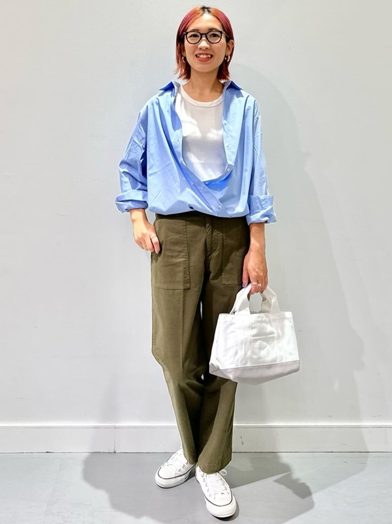 端境期には、肌離れのいいドライな綿シャツが至高。猛暑を乗り切ったとはいえ着込みすぎると汗ばむ今、タンクトップに羽織るだけで着こなしが秋めく。暑くなったらシャツをたすき掛けに、涼しくなったらボタンを留めて。着こなしの幅が広がります。