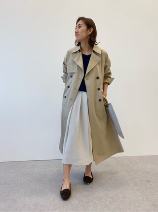 今回は、寒暖差のある日に持ち運びにも便利な万能トレンチコートを使ったコーディネートをご紹介。