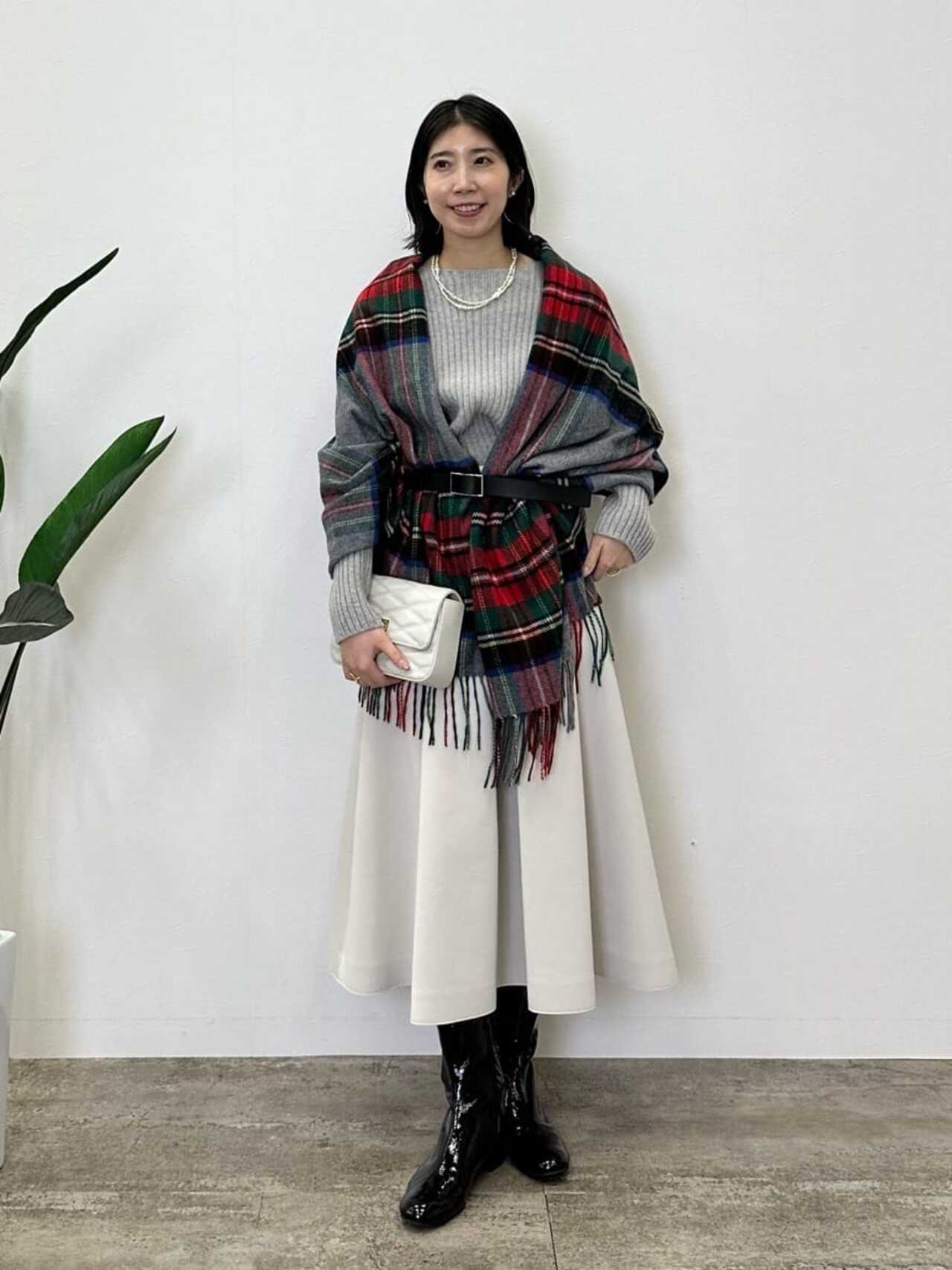 - カシミヤ チェック ストール/23区