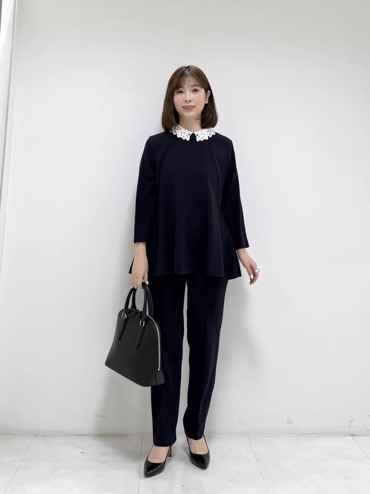 - 【KUMIKYOKU NAVY】コンフォータブルドレープ レース襟ワンピース/組曲
