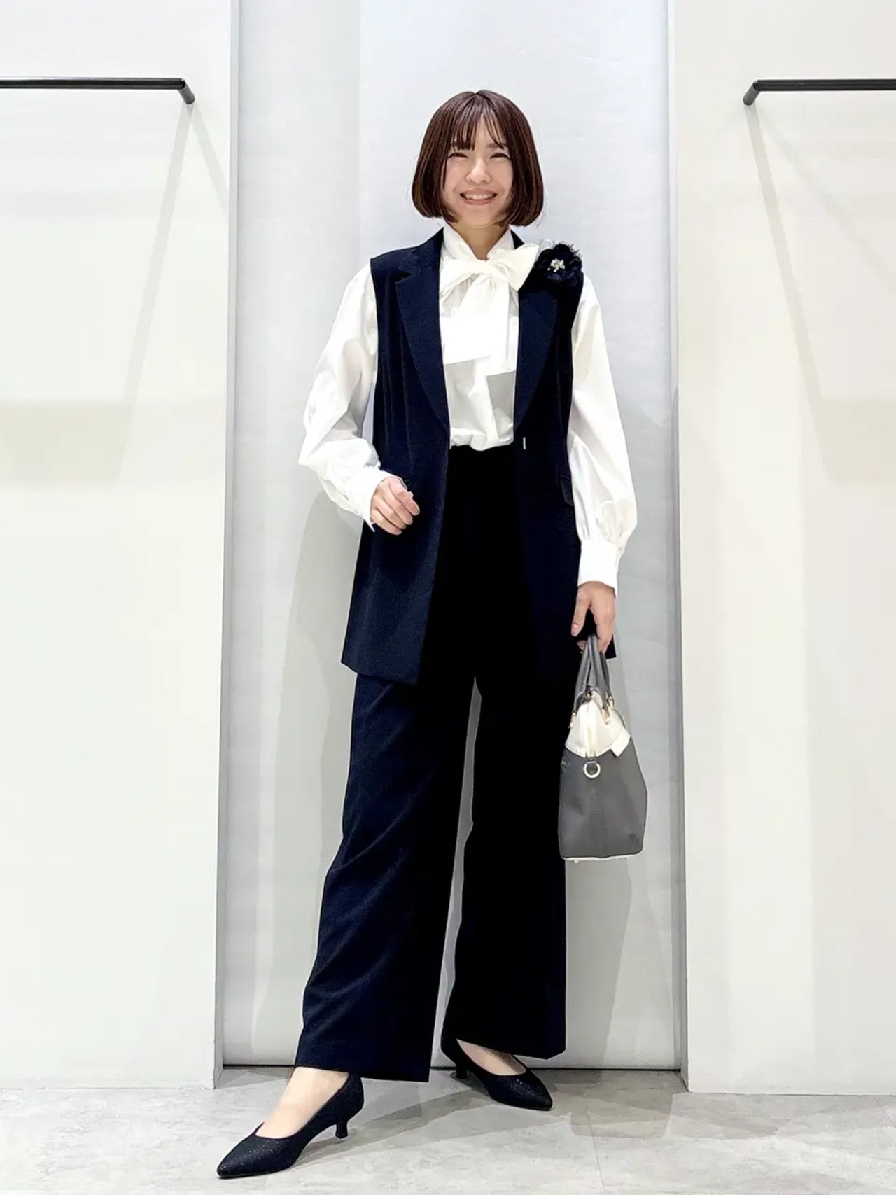 - 【滝沢眞規子さん着用/Oggi掲載】ストレッチライトタイプライター 2WAY ボウタイブラウス/23区