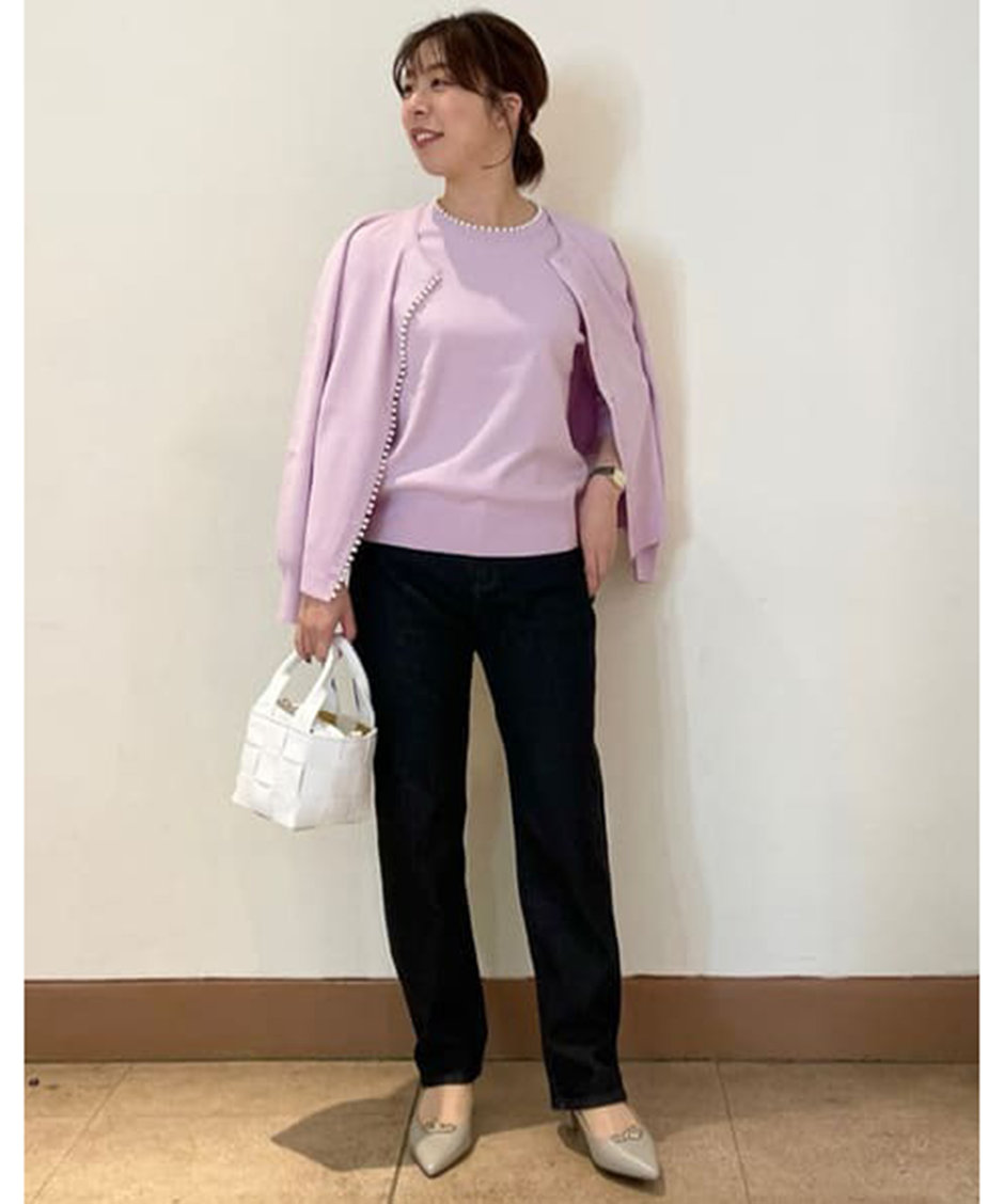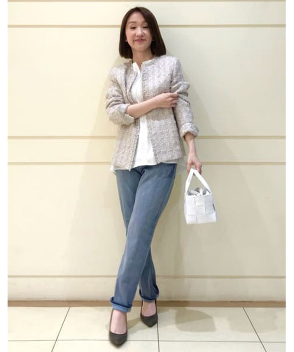 04.きれい目なアンサンブルもデニムとスタイリングして、カジュアルに。