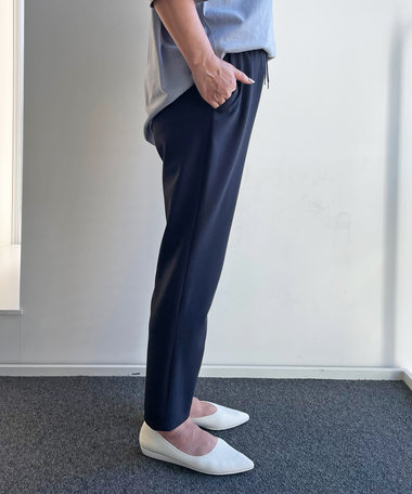 ウエストから太ももにゆとりがあって裾に向かって細いので、腰張りを隠しスタイルアップ観点でも細見えが叶うパンツ!
