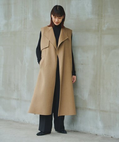 uncrave STANDARDの人気商品、リバーロングジレ。高級感のあるリバー仕立てで作られたトレンドの一枚です。