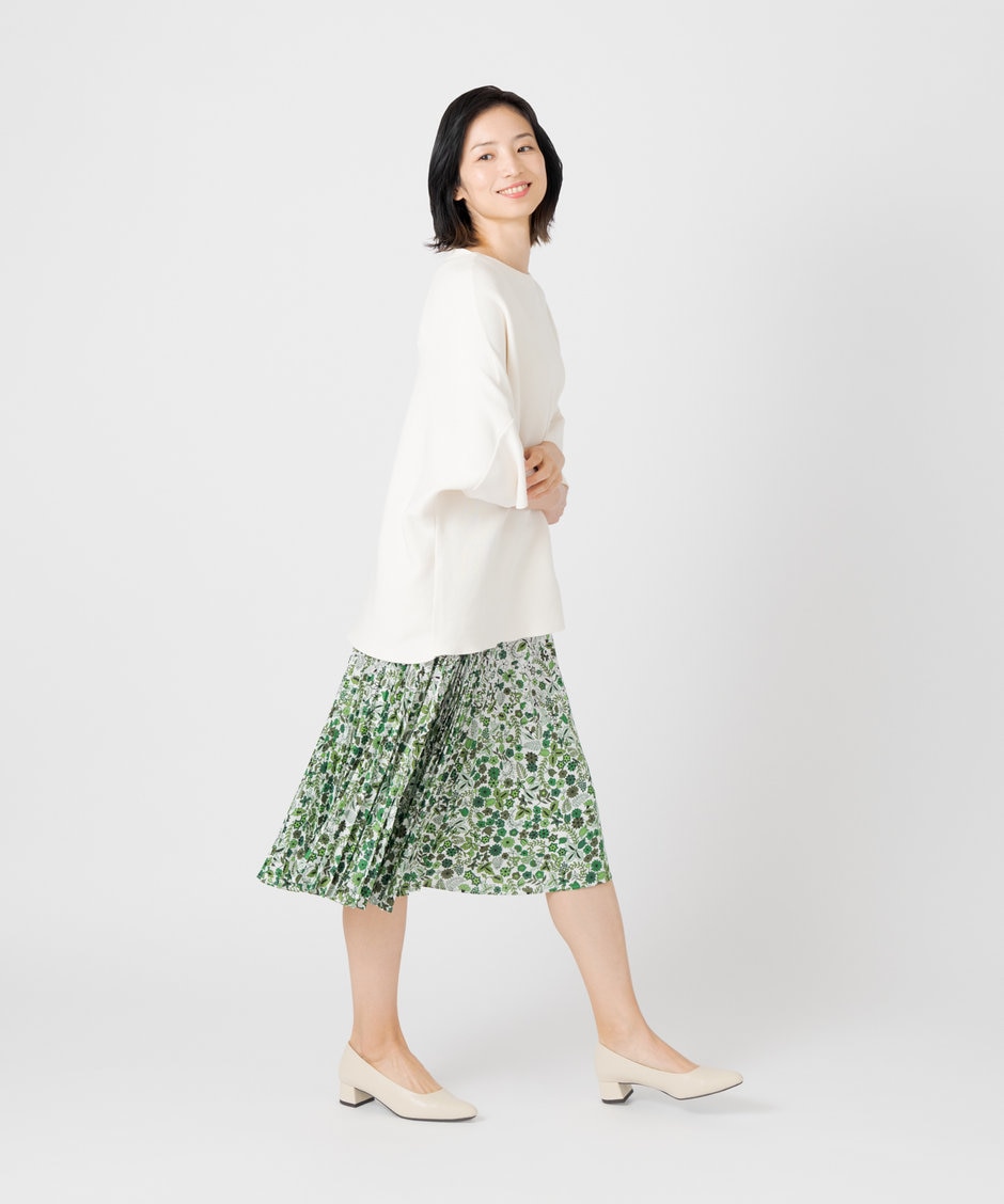 揺れ感がきれいな花柄スカートが春らしいスタイル