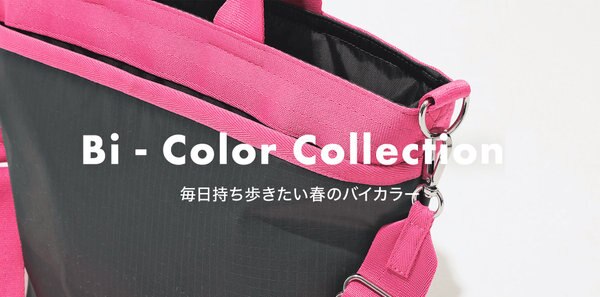 フューシャピンク×ダークグレー、オフホワイト×サックス、ネイビー×オフホワイトのバイカラー3色。