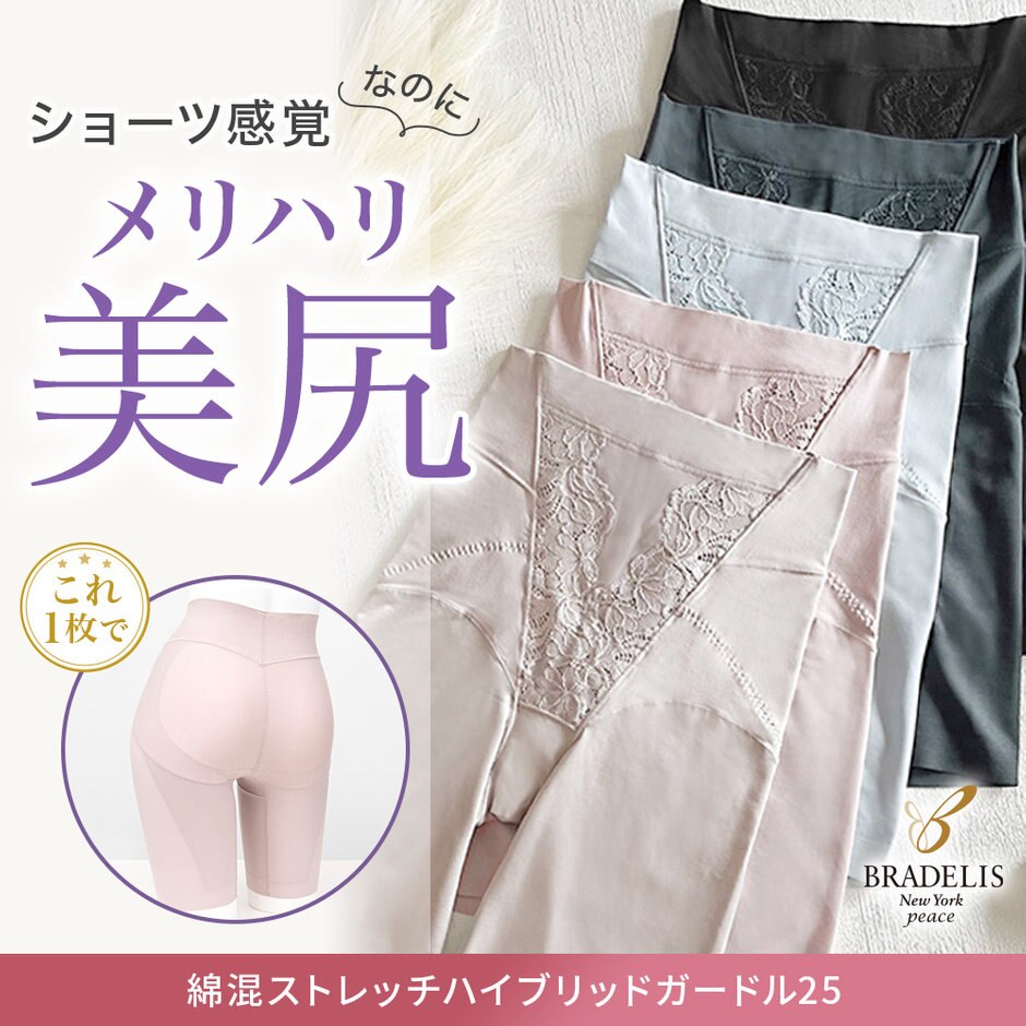 【BRADELIS NewYork peace】綿混ストレッチハイブリッドガードル25 クロッチ付きで1枚履き可能な補整ガードル 消臭機能付き ブラデリス