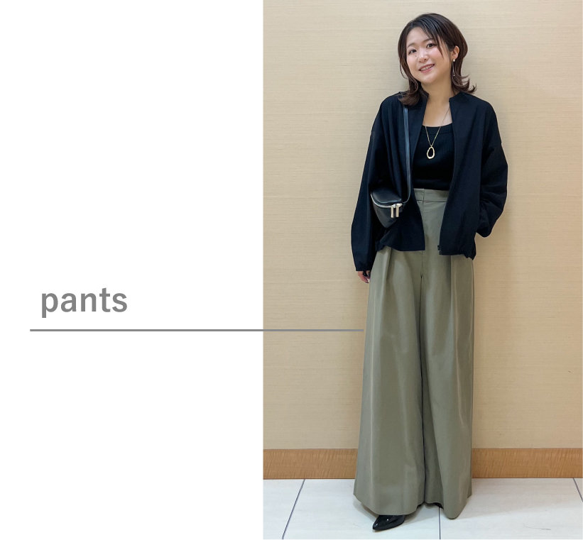 ブラックのパンツは、カラーアイテムとの相性も抜群です。(スタッフ身長:160cm)