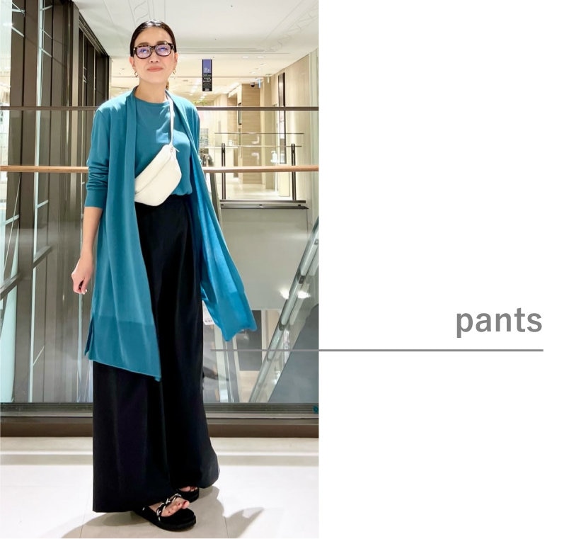 分量感のあるワイドパンツは、コーディネートの主役としても使えるアイテム。