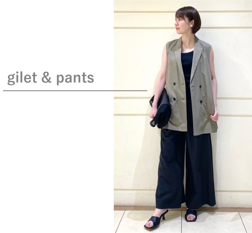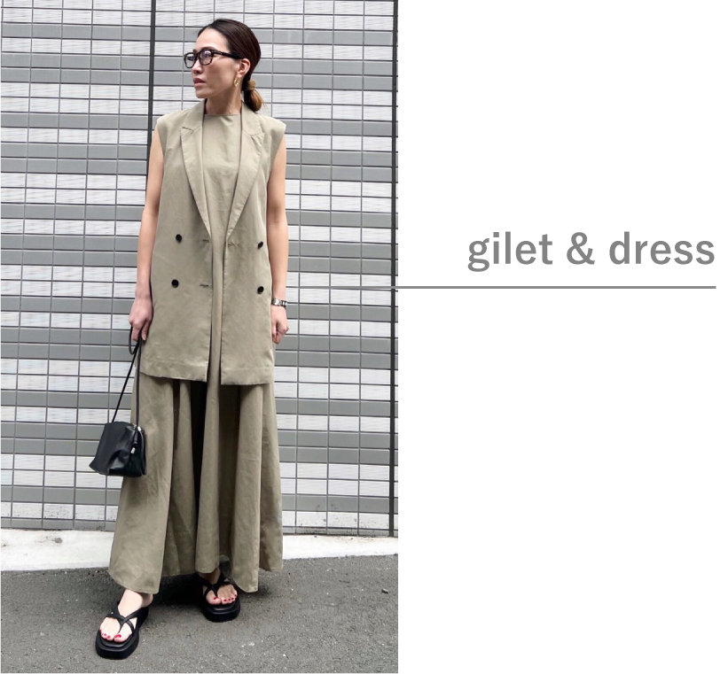 大人の洗練された雰囲気漂う、ジレ×ワンピースのセットアップ。