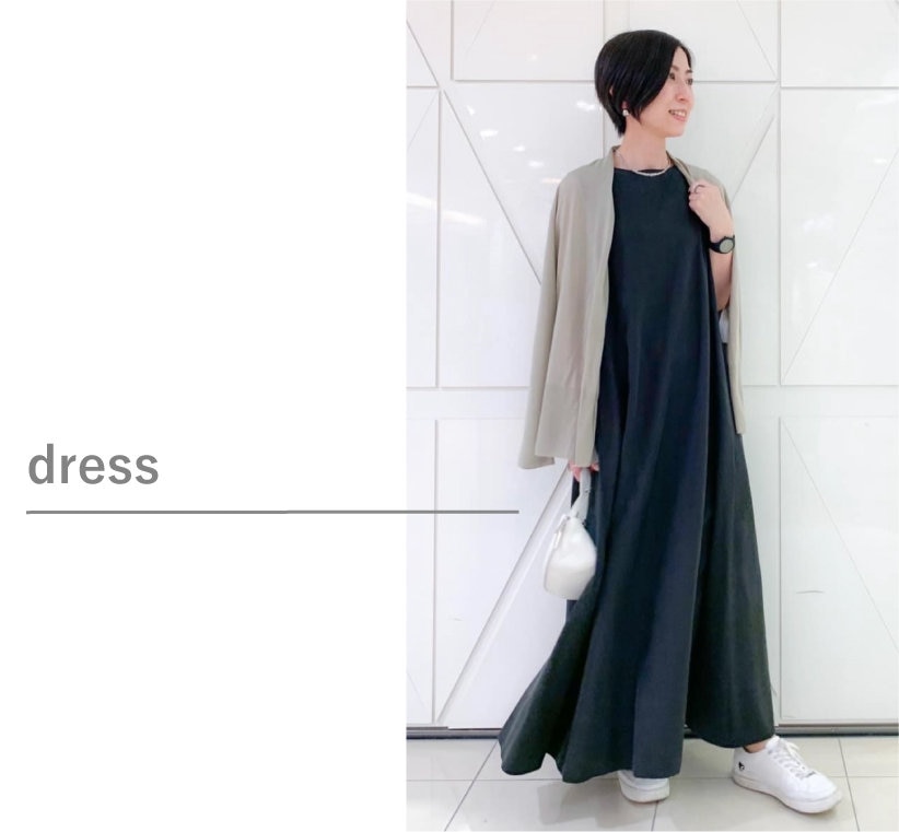 フレアが軽やかに広がるワンピースは、お出かけシーンにもおすすめの一枚。