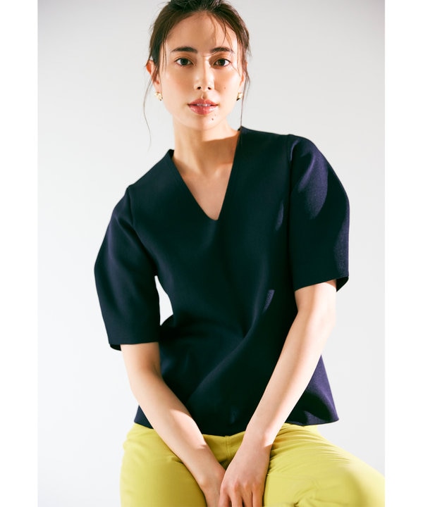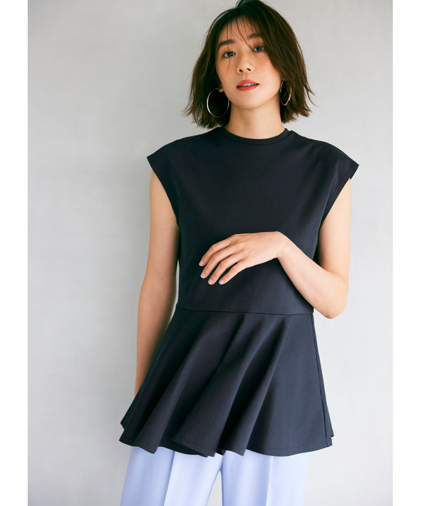 ■【UVケア・接触冷感】ダブルフェイスジャージーペプラムカットソー ¥8,910(税込)