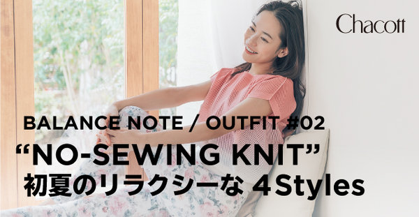 等身大で心地良く着られるチャコット・バランスの新作を使い、旬のスタイリングを提案する「OUTFIT」。#02では、縫い目のないストレスフリーな着心地が人気の“ノーソーイングニット”の着こなしとアイテムをご紹介。特殊な編み機を使って編み立てたオリジナリティあふれる多彩なデザインは、デイリーにもレッスンにも活躍し、春の装いを軽やかにアップデートしてくれる。風通しの良いリラクシーなスタイルで、初夏を快適に過ごして。