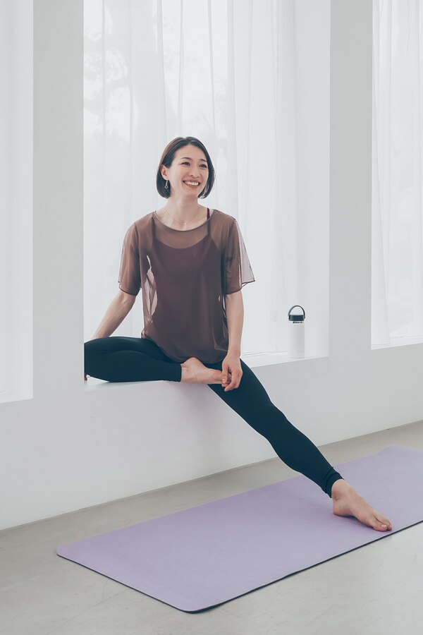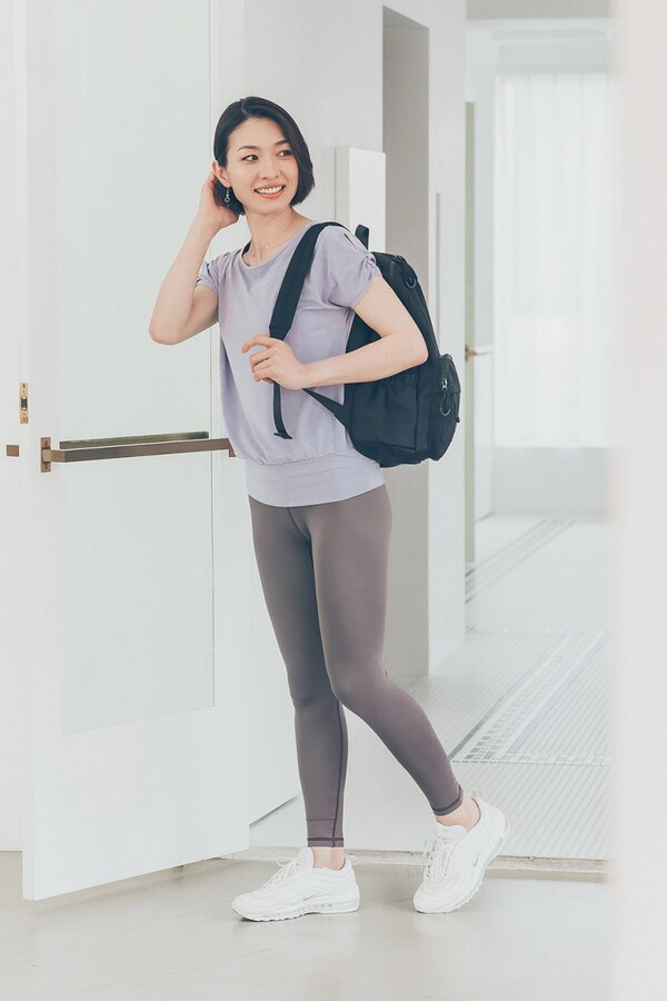 「繊細なのに動きやすいシアーTシャツってなかなか見ないからすごくすてき。普段も楽しめるおしゃれ感があるし、レッスン中の汗ジミが目立たないのもうれしい。スムースレギンスのほど良いフィット感もずっと好きで、夏は薄手で接触冷感性もあるスムースライトレギンスに衣替えしています」