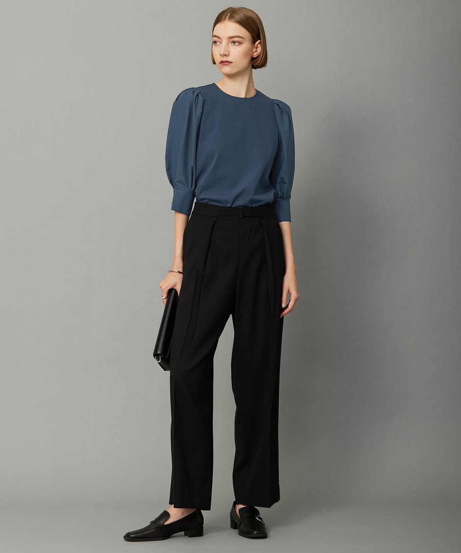 ラクな着心地ながらお洒落が決まる、ニュアンスカラーのブラウスセットアップ