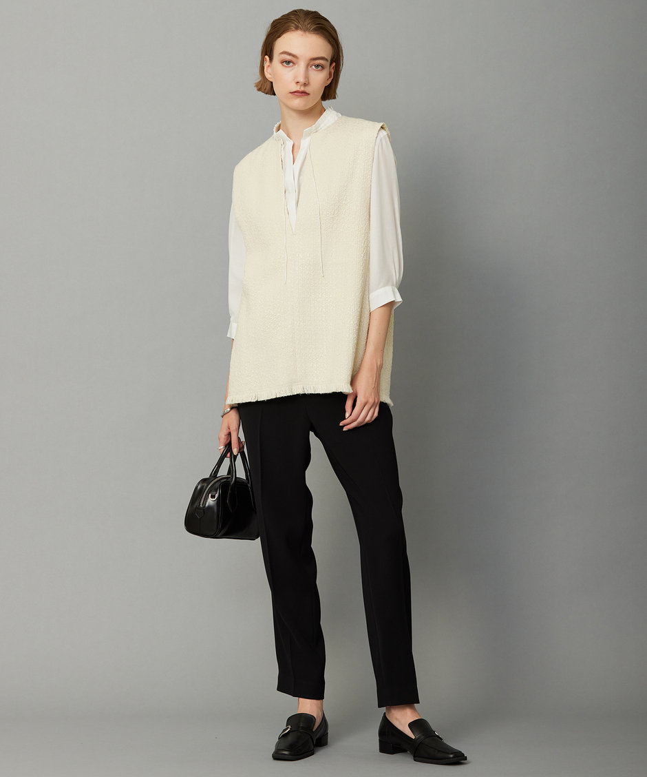ツイードベストのレイヤードで、いつものスタイリングが旬顔に