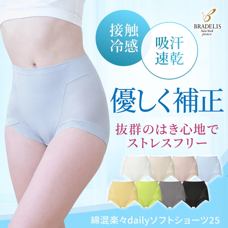 【BRADELIS NewYork peace】綿混楽々dailyシェイプパンツ25 ガードルショーツ 1枚履き可能 ハイウエスト 補正 下着 細見え