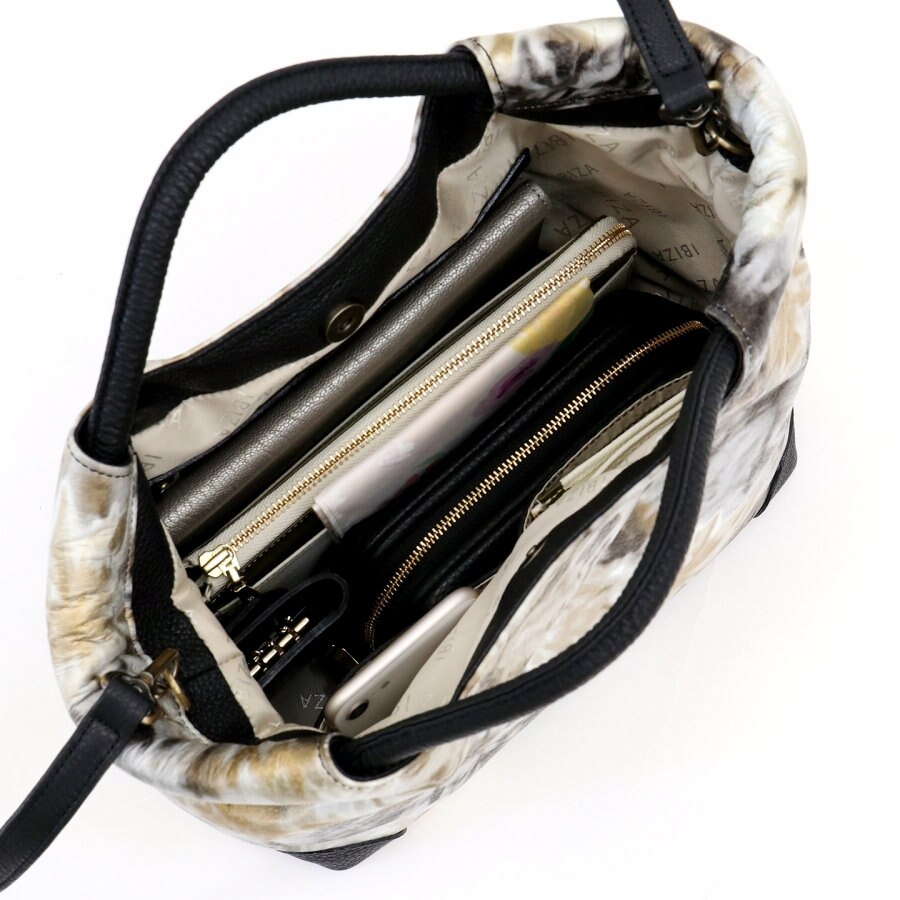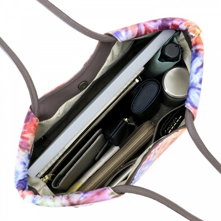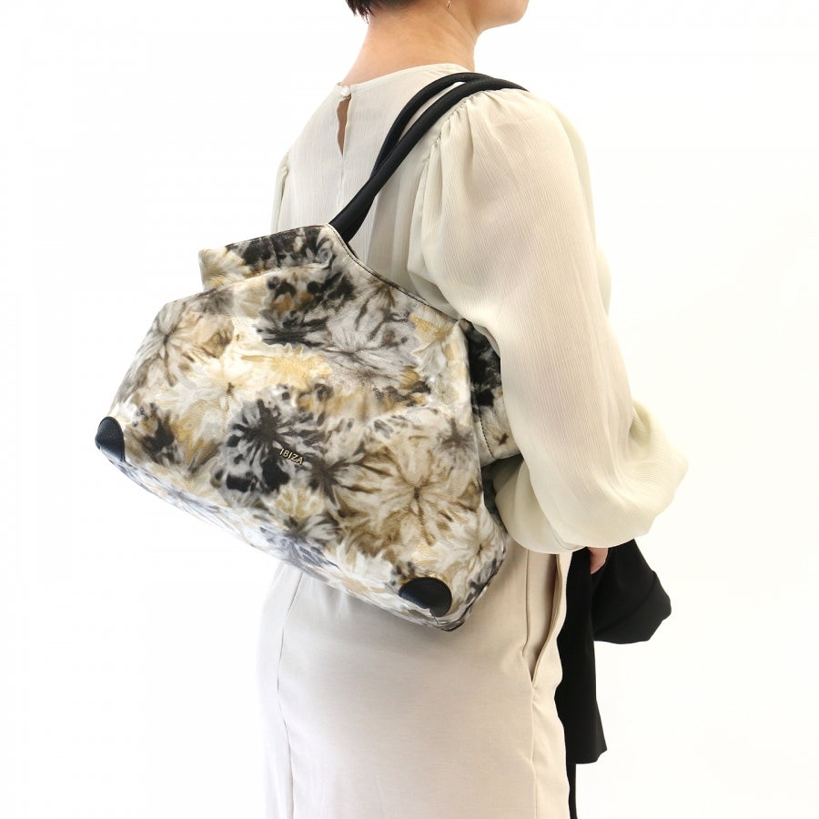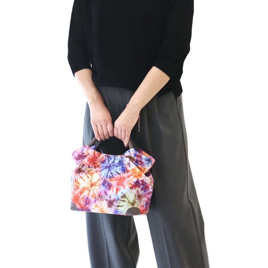 彩り豊かな花束を抱えたときの幸福感をバッグに込めた Ramo(ラモ=花束)。日本が誇る国産レザー『ピッグスキン』に、イビサのルーツでもあるスペインを彷彿とさせる、サフランの花をモチーフにしたイタリアンプリントを施しました。革本来の風合いを感じられるデザインと、やわらかな質感を活かしたシルエットをお楽しみいただけるコレクションです。