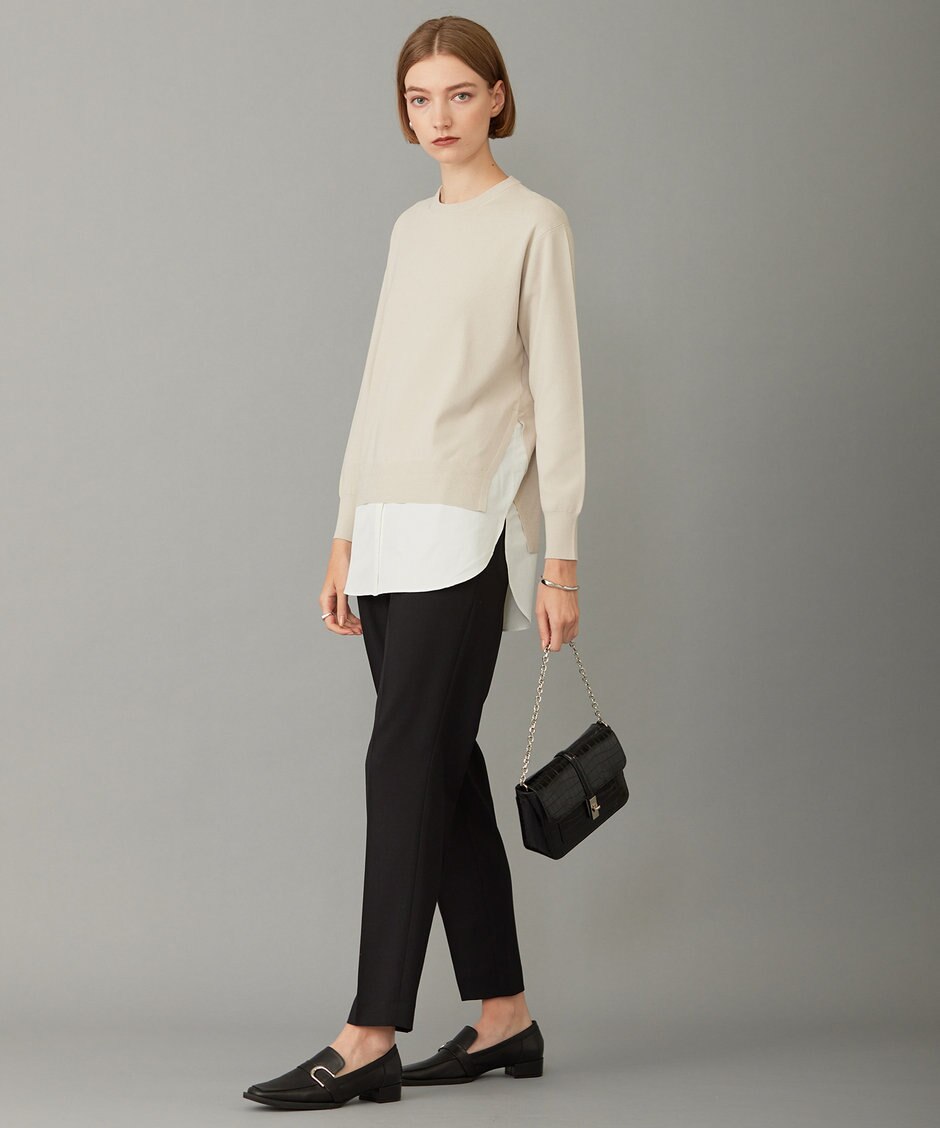 シャツディテールをドッキングしたニットなら、パンツと合わせるだけでお洒落が決まる