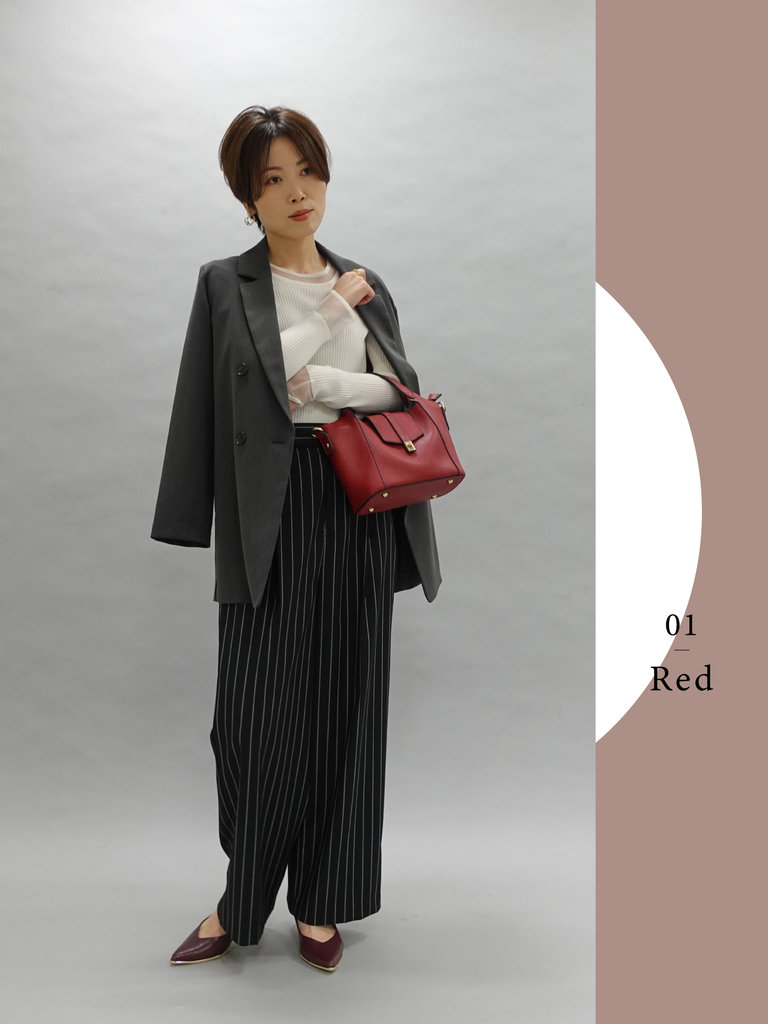 今シーズン注目のレッドも、嫌味のないアクセントに。