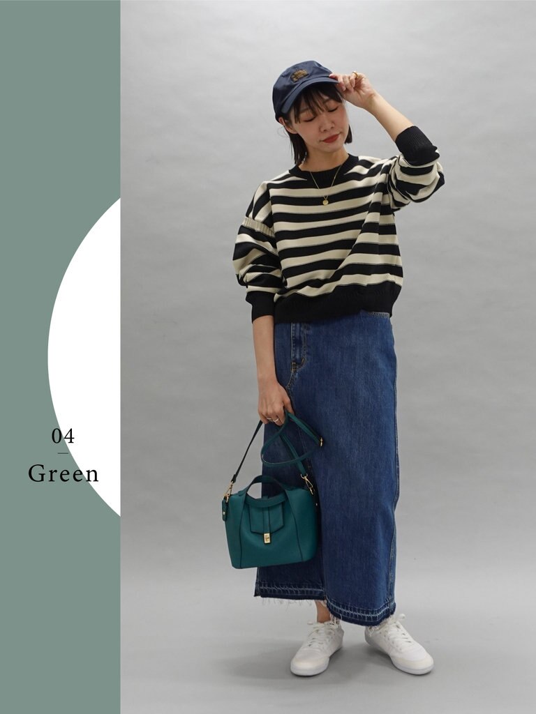 深みのあるグリーンが秋冬スタイルに奥行きをプラスしてくれます。