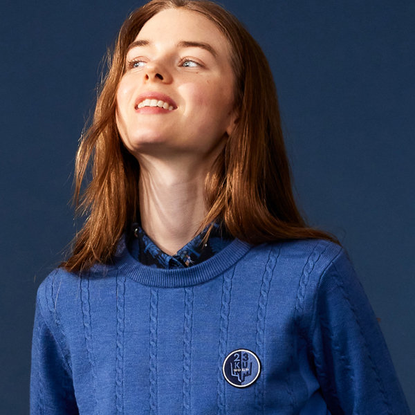 ■ポイント③:初秋は一枚で。寒さを感じ始めたらベストのレイヤードスタイルを。もっと寒い冬時期にはトレーナーはセーターインで柄の見える分量を調整して。ロングシーズン着回しを楽しめます!