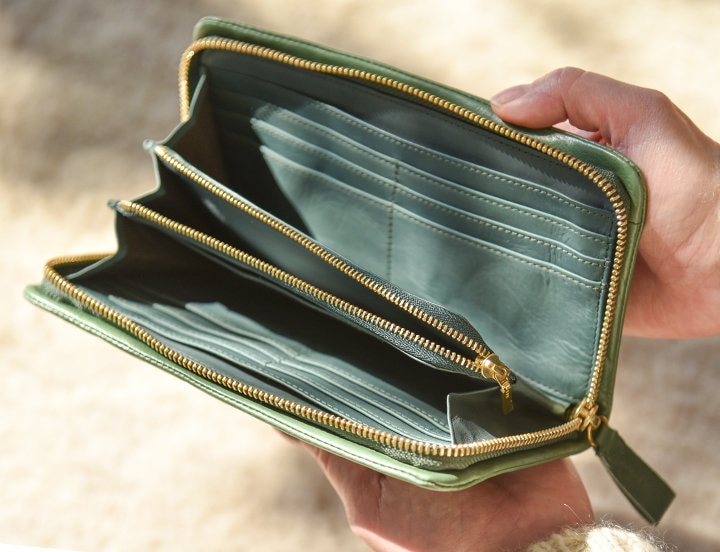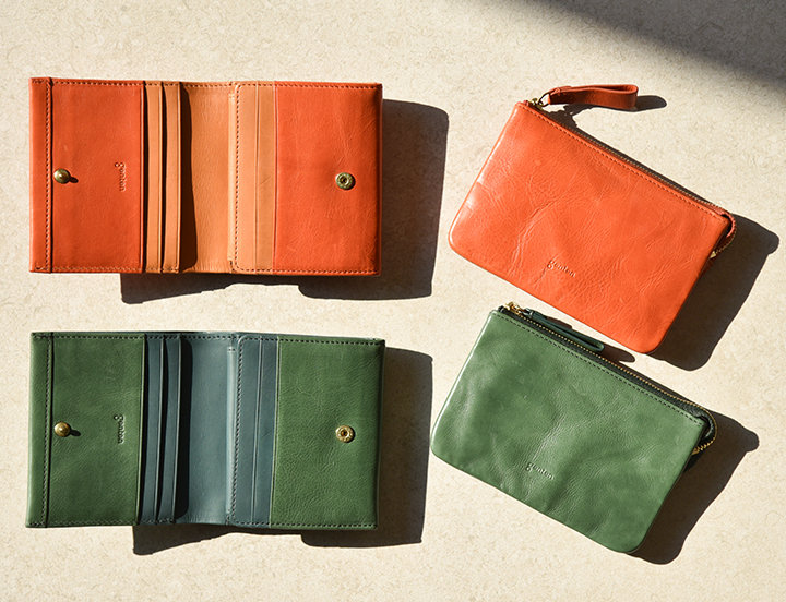 袋縫いという製法をつかった、質感の異なるカーフとゴートのお財布を紹介します。