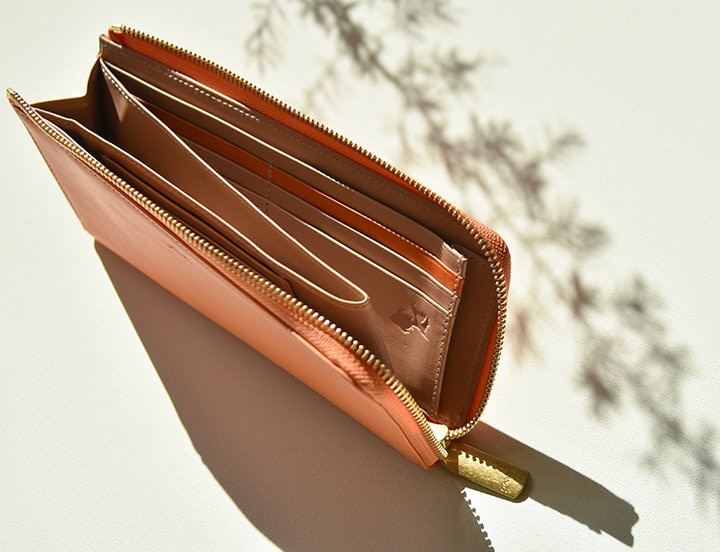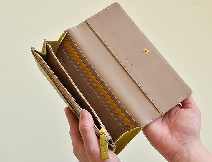 L字ファスナーとかぶせ、 確かな収納力のある長財布2型