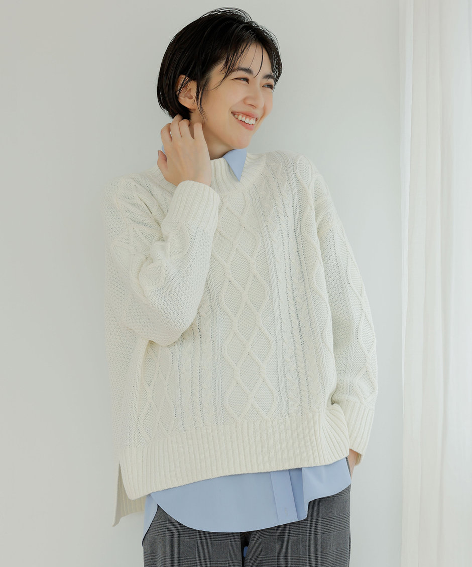 見た目ざっくりなのに柔らかタッチで着心地抜群!ハイネックケーブルニット