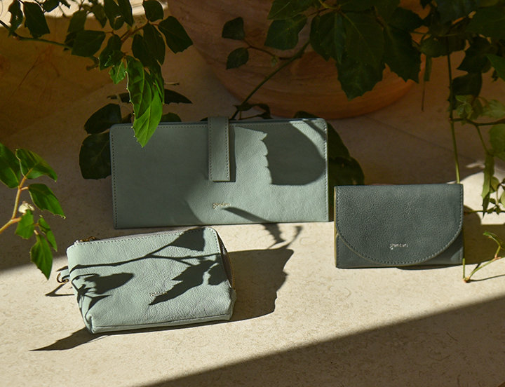 定番のゴートベーシックとフレスコに、新生活にぴったりな小物が加わりました。いずれも、お客さまからのリクエストにお応えして、より使いやすくアップデートしたものばかりです。また新色として、やわらかなニュアンスカラーの「グレージュ」と「ミントグリーン」をご用意しました。