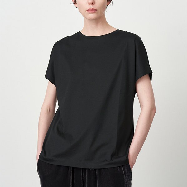 肩から二の腕を包み込む様なキャップスリーブTシャツ。ステッチを排除したデザインですので、カジュアルな印象にならず着ていただけます。