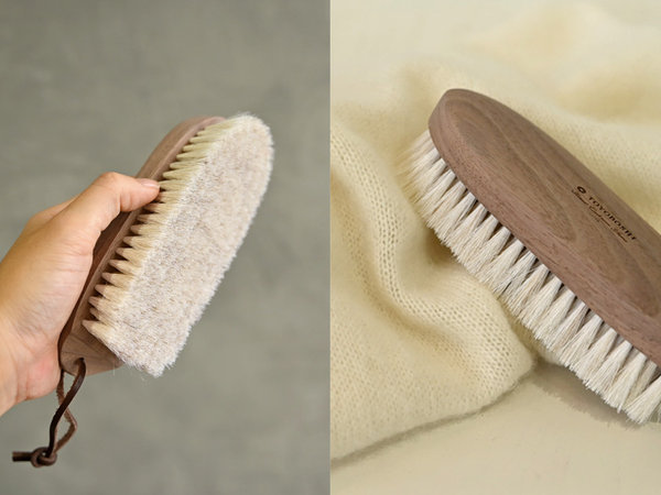 AND WOOLでお作りした上質なカシミヤニットをより長くお使いいただけるよう、カシミヤ用の馬毛ブラシを入荷いたしました。