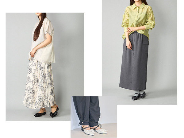 程良いトレンド感のあるカジュアルシューズとモードなフォルムのベーシックシューズ。