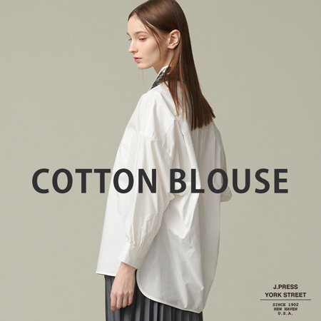 【WOMEN】コットンタイプライター バックドレープブラウス