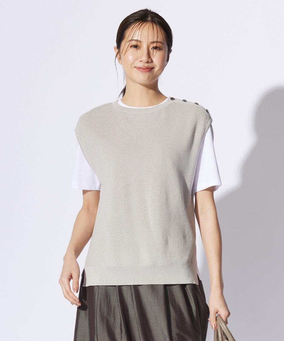03. 片畦で編みたてた、肩のボタンディテールがポイントのニットベスト