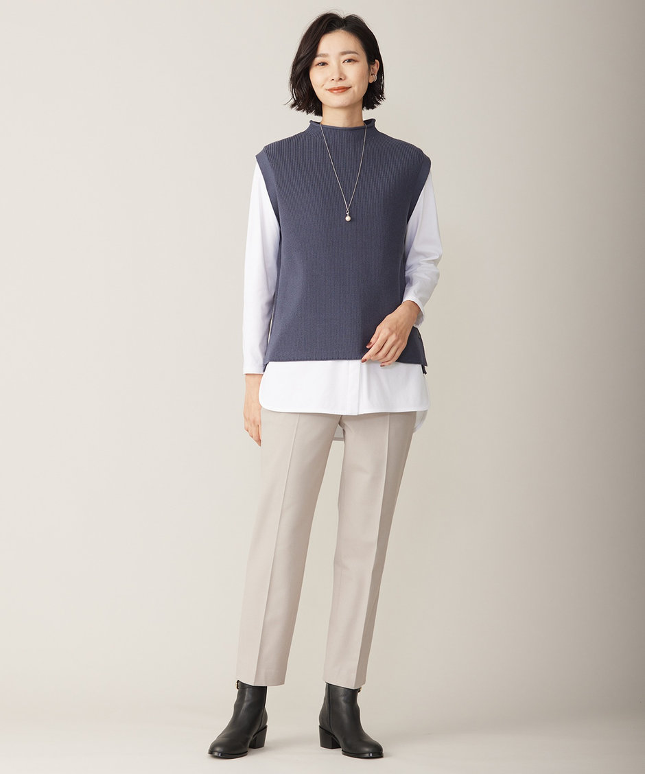 02. 低めのボトルネックで暖かい&きちんと見えの綺麗めコットンニットベスト