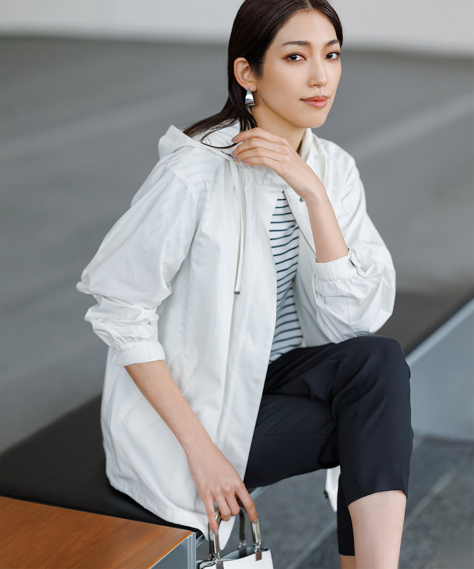 大人のマリンルックが叶う、キレイ見えマウンテンパーカー。驚きの超撥水素材でレインコート代わりにも。気負わず着られるのにどこか上品さが漂うのは、潔い白のなせる技。春だからあえて、大人だからあえて。今年は白を。