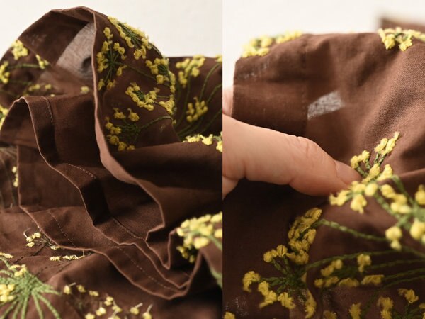 muucオリジナルテキスタイルの定番の一つ、フェンネルの花刺繍シリーズのワンピースをご紹介します。静岡富士宮市のオーガニック北山農園を訪れた際に美しく印象的だったフェンネルの花を表現しています。こちらのワンピースはコットン100%の生地でオールシーズン心地良く、スカート部分のみ二枚仕立てで透けづらく、後ろファスナー開きなので着脱しやすくなっています。左右ポケットあり、ポケットの中に隠れたウエストアジャスター紐でウエストマークできますので、様々な体型の方に着ていただけます。