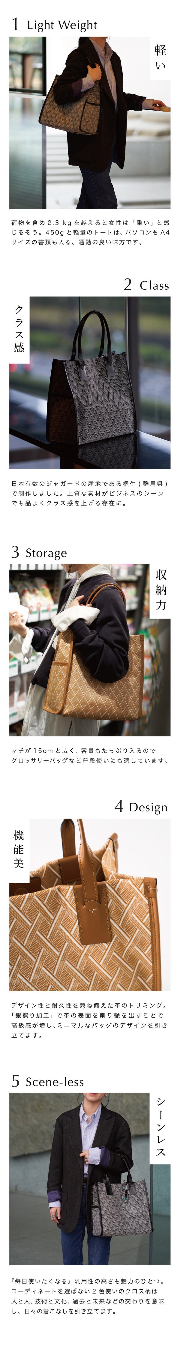 日本有数のジャガード織の産地である桐生(群馬県)で製作。人とひと、技術と文化、過去と未来なと?の交わりを意味しています。