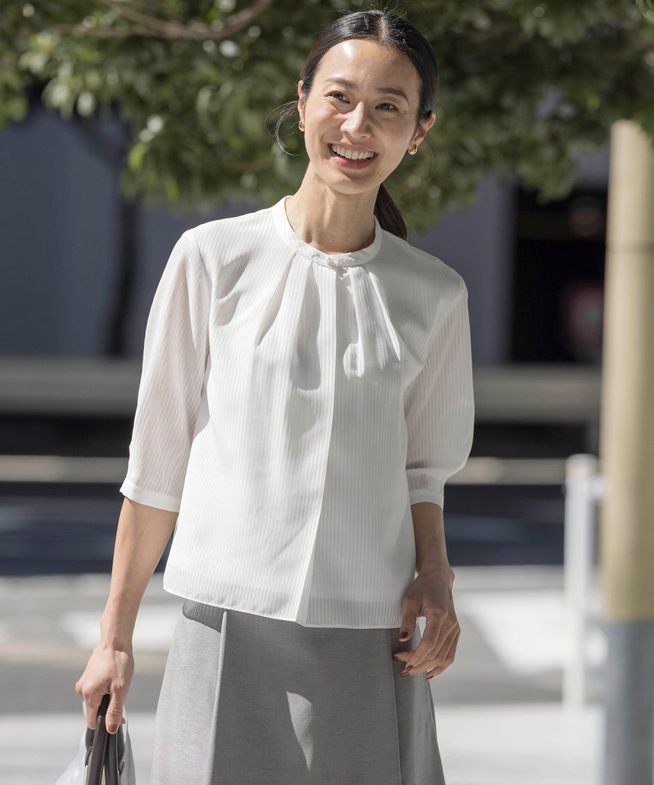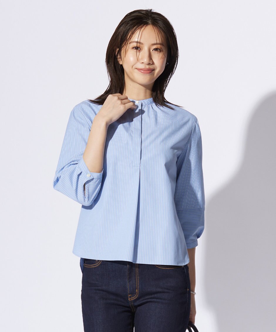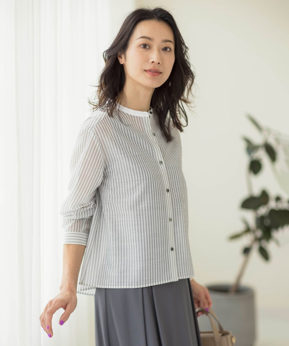 エステネージュストライプ バンドカラーブラウス ¥19,910(税込)