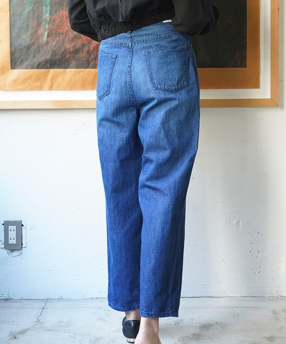 アンクル丈のゆったりテーパードシルエットのコットンリネンデニム。
