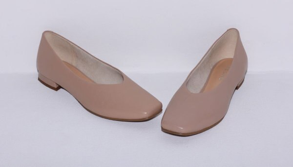 足元にモード感を添える、程よいスクエアトウでシンプルなデザインのフラットシューズ。