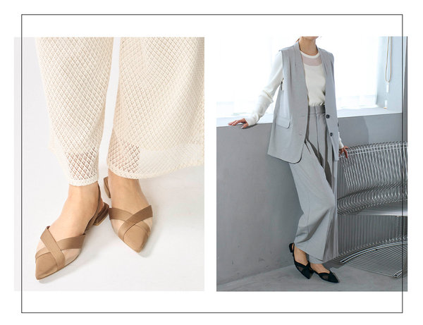 オープントゥとバックベルトデザインが、ヘルシーな肌見せと抜け感を与えてくれます。