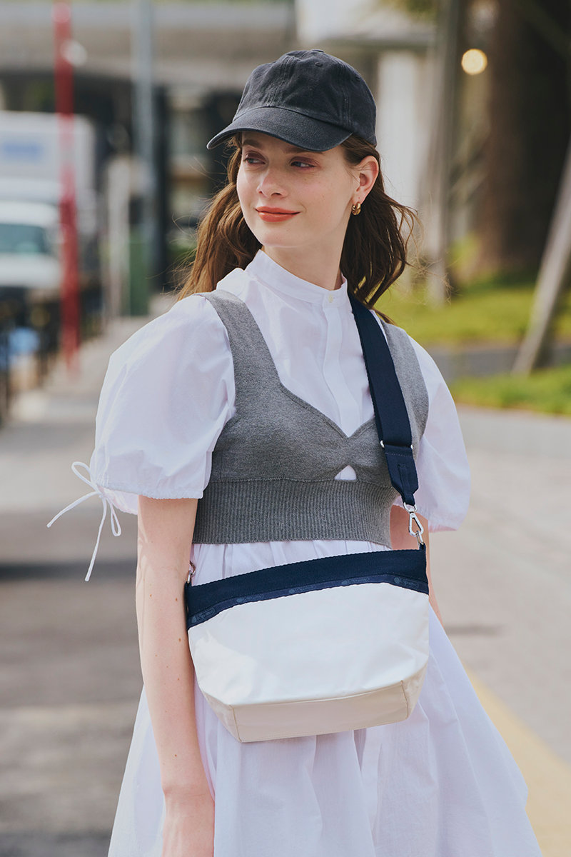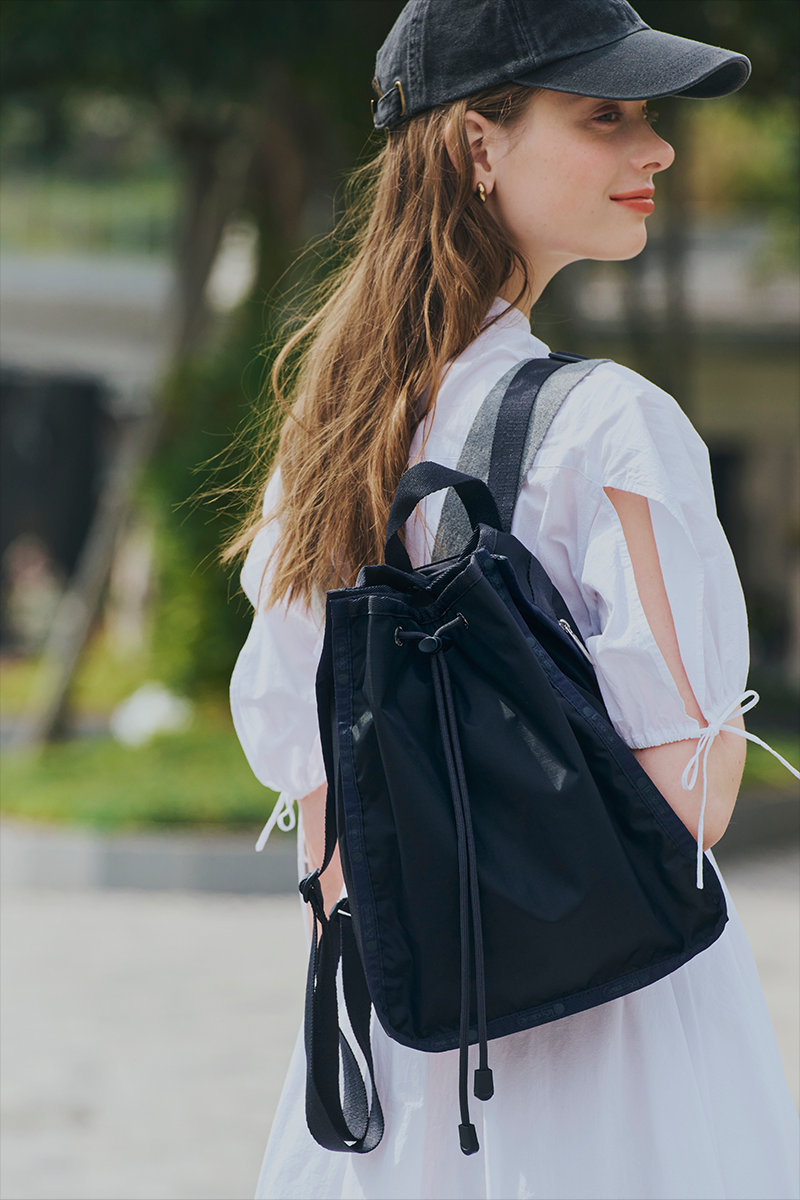 トレンドのミニバックパックは、クリーンなホワイト「メレンゲ」で爽やかな印象に。