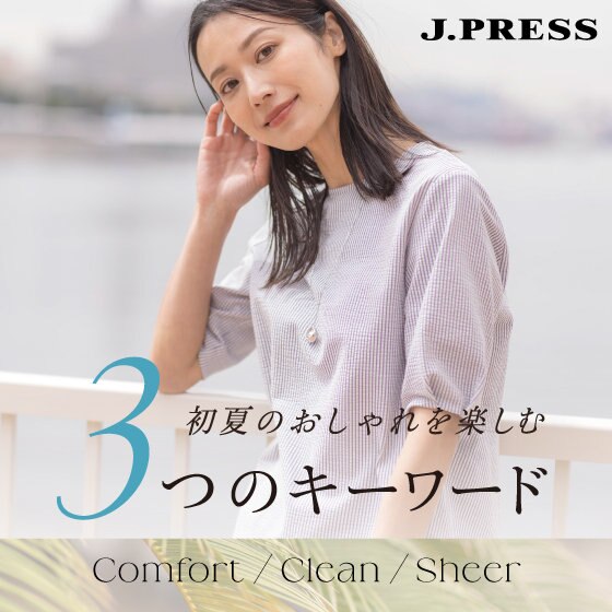 J.PRESS LADIESより、初夏のおしゃれを楽しむためのコーディネートを、「Comfort-快適」 「Clean-きれいめ」 「Sheer-透け感」の3つのキーワードに分けてご提案いたします。