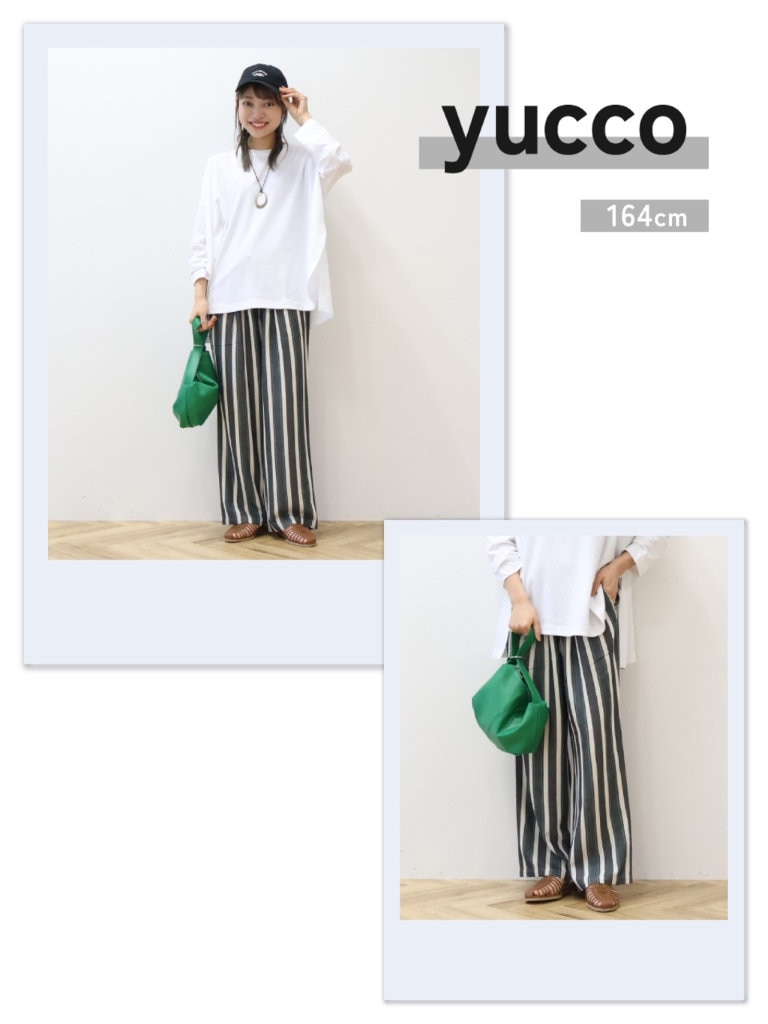 さらっとした落ち感のあるリネンパンツには、あえてトップスをインせずに着ることで、よりリラックス感を強調してくれます。