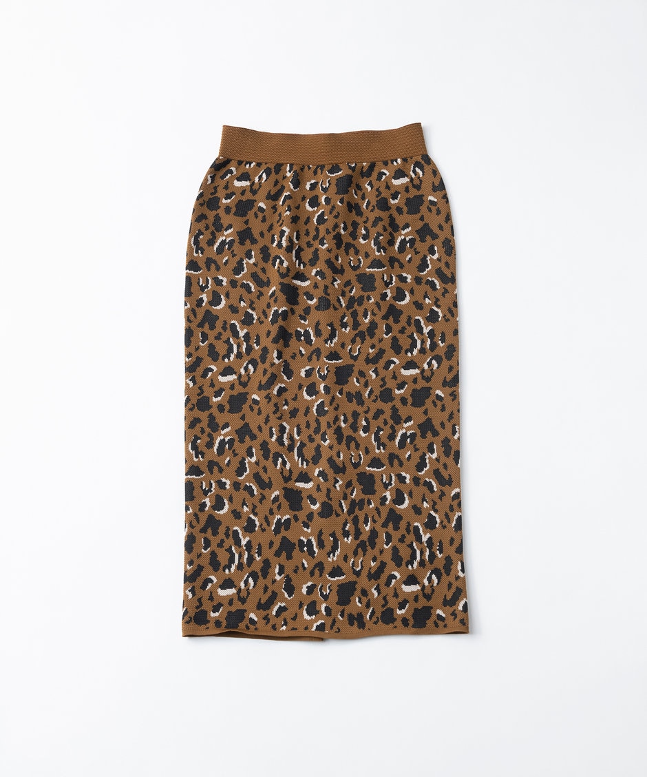 存在感のあるレオパード柄スカート。インパクトのある柄をニットで表現することで柔らかな印象の1枚。